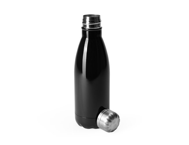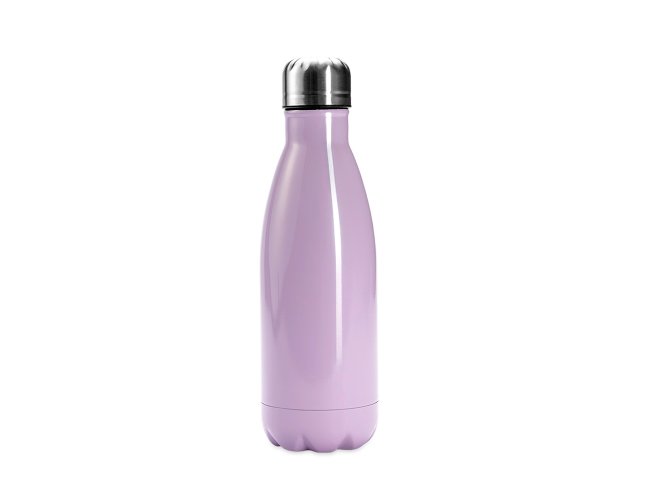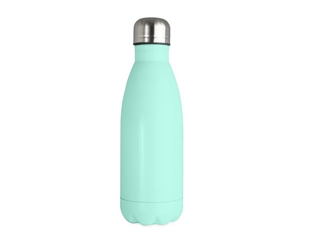 Garrafa 650ml em inox com tampa rosqueável e pintura brilhante. Obs.: Não é um modelo térmico.