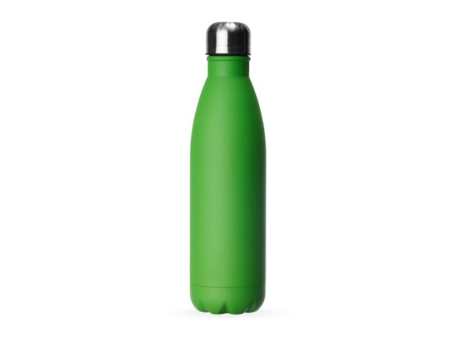 Garrafa 750ml em inox com tampa rosqueável e pintura fosca cítrica. Obs.: Não é um modelo térmico.