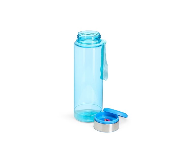 Hidratação e organização! Feita em plástico, nossa garrafa tem capacidade de 950ml e contém uma função extra: porta-comprimidos. Sua tampa rosqueável com detalhe em alumínio possui um compartimento para armazenar comprimidos de forma segura. Além disso, sua alça de nylon oferece mais comodidade no transporte.