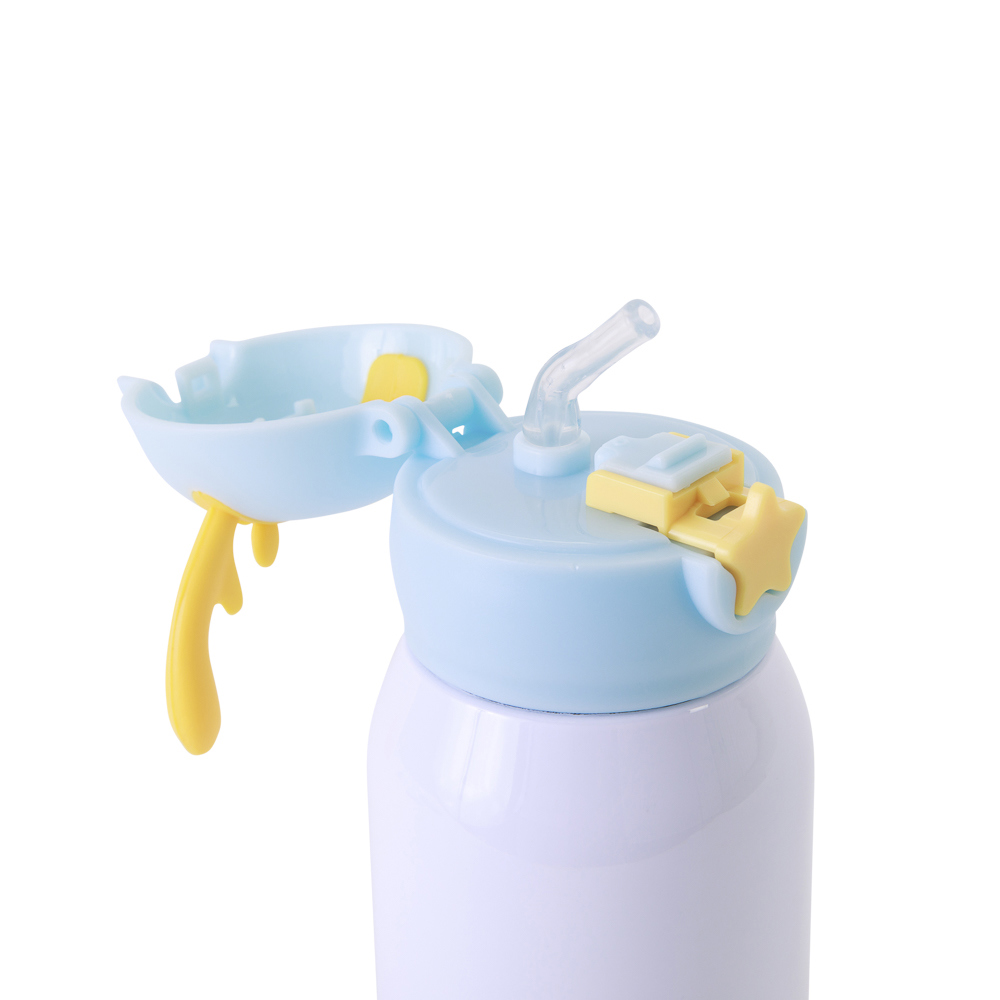 Garrafa Térmica Para Sublimação Inox Com Tampa Urso Lilás Com Bico De Silicone E Canudo De 435Ml