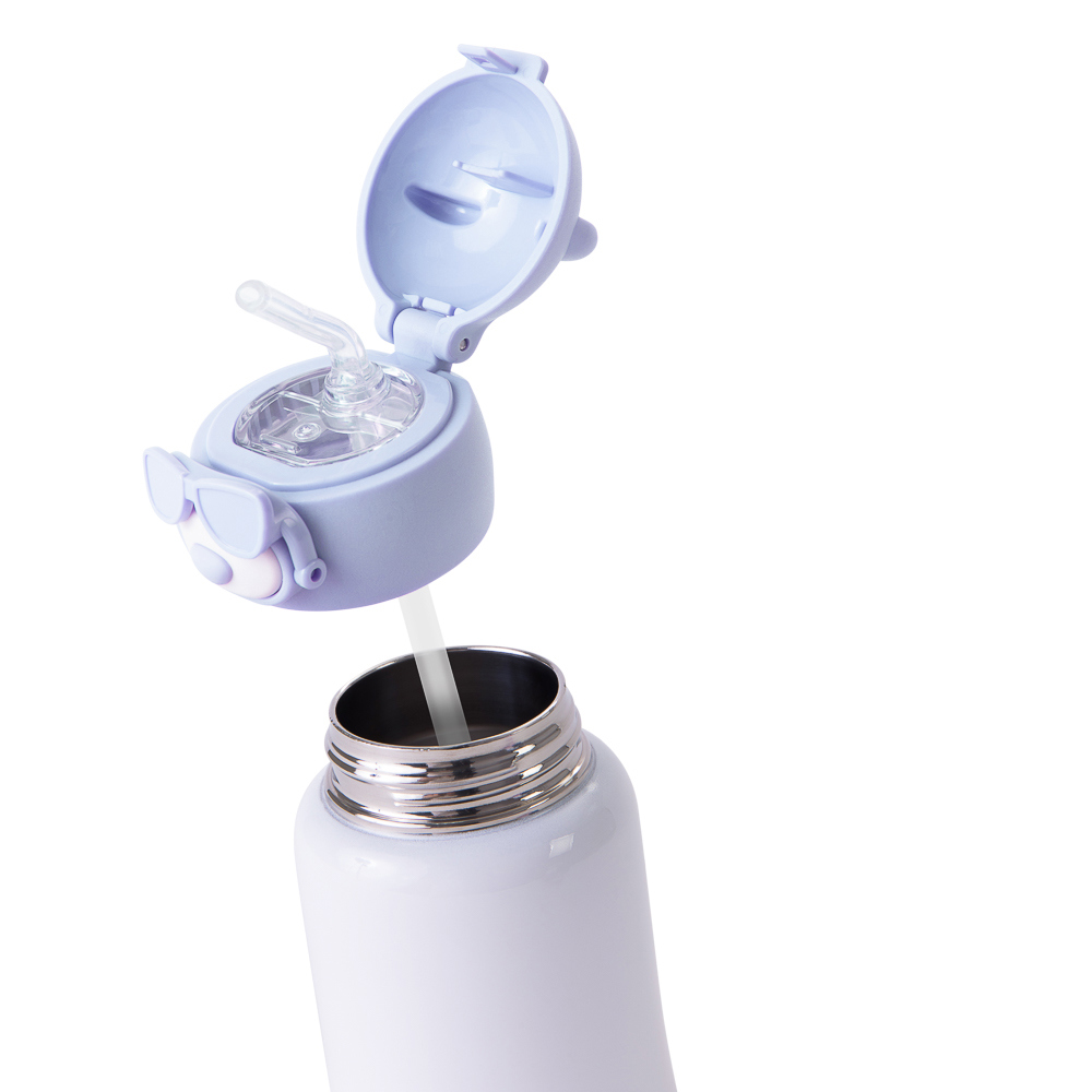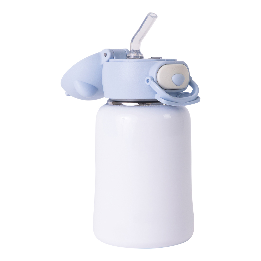 Garrafa Térmica Para Sublimação Inox Com Tampa Urso Azul Com Bico De Silicone E Canudo De 435Ml