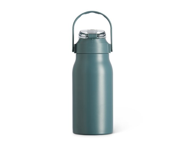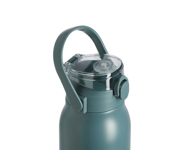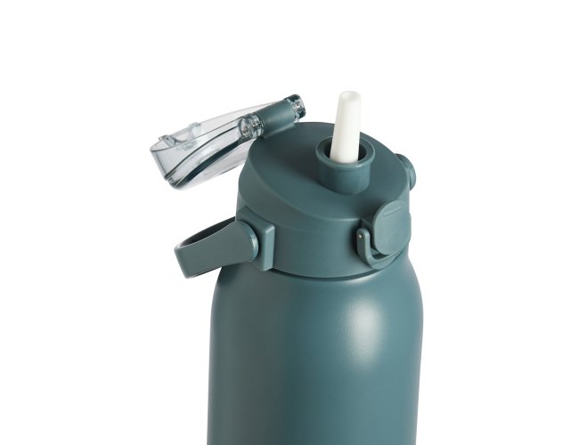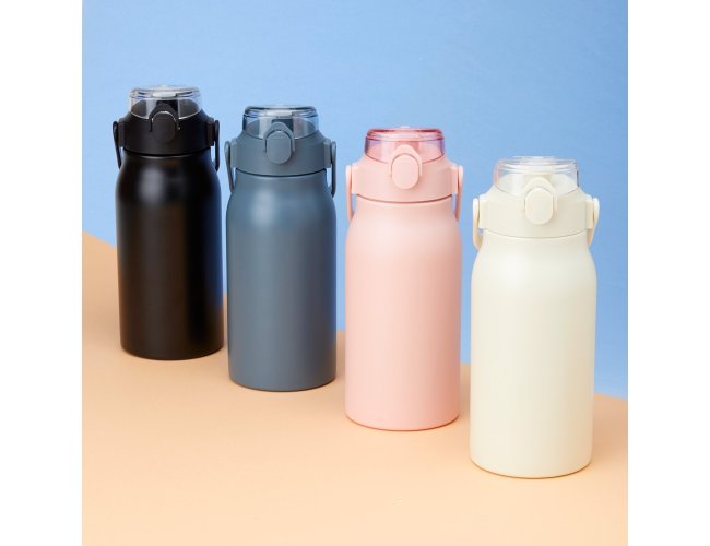 Garrafa Térmica com parede dupla, capacidade de 1 Litro. Tampa com trava de segurança, botão de acionamento e tampa de proteção para o bocal. Com alça para transporte, acompanha um canudo e dois acessórios de extensão de canudo.