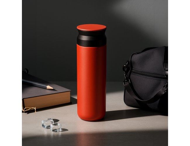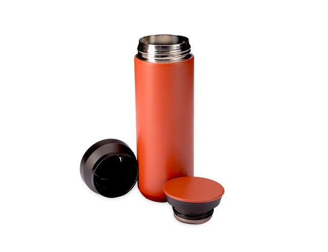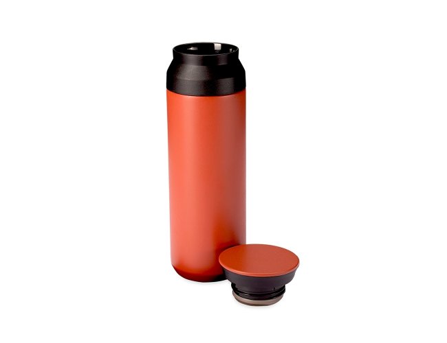 Garrafa térmica com capacidade de até 470ml feita em inox de parede dupla. Possui tampa rosqueável com vedação a vácuo e abertura dupla, proporcionando a conservação da temperatura de líquidos por mais tempo.