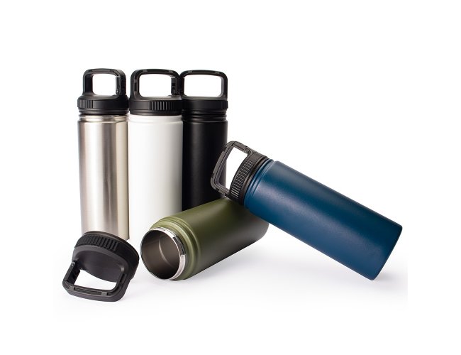 A combinação de estilo e praticidade em uma só garrafa térmica. Com capacidade total de 500ml, construção em inox de parede dupla e isolamento a vácuo, esta garrafa térmica mantém a temperatura constante dos líquidos, evitando vazamentos e o contato direto com o calor ou frio do líquido durante o manuseio. A garrafa ainda conta com uma tampa rosqueável de plástico com uma alça em formato de presilha para facilitar seu transporte, prendendo-a em mochilas ou mantê-la em outros espaços.