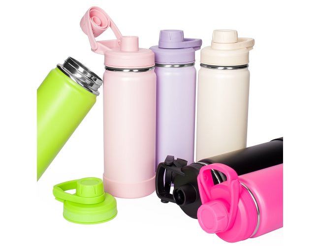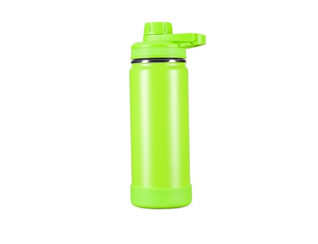 Esta garrafa térmica em inox com capacidade de 550ml permite conservar a temperatura de líquidos por mais tempo graças à sua estrutura de parede dupla e isolamento a vácuo. Sua tampa rosqueável plástica conta com um protetor de bocal e alça fixa. Além disso, acompanha um protetor removível em silicone para a base da garrafa.