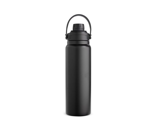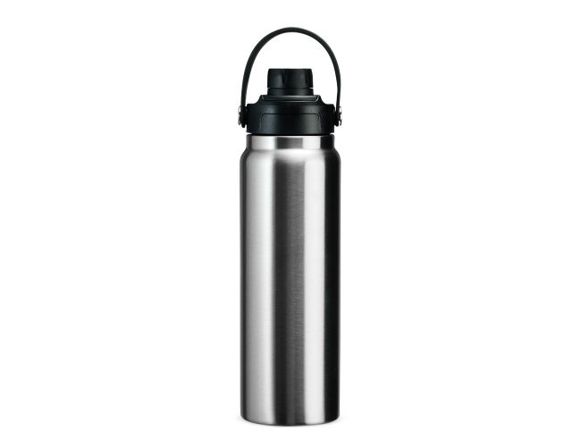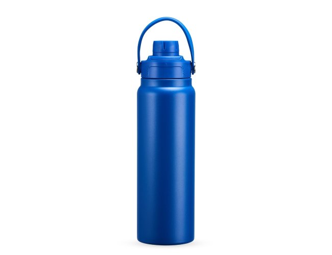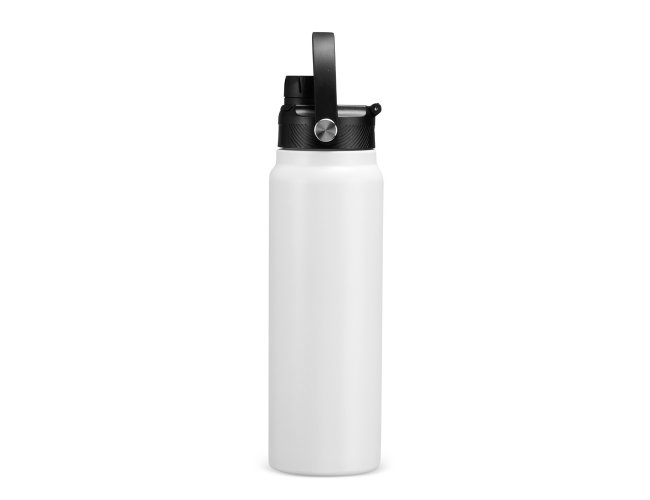 Garrafa térmica em inox com capacidade de até 800ml. Conta com estrutura de parede dupla e vedação a vácuo, o que possibilita manter a temperatura de líquidos por mais tempo. Possui tampa plástica rosqueável com protetor para o bocal e alça para transporte.