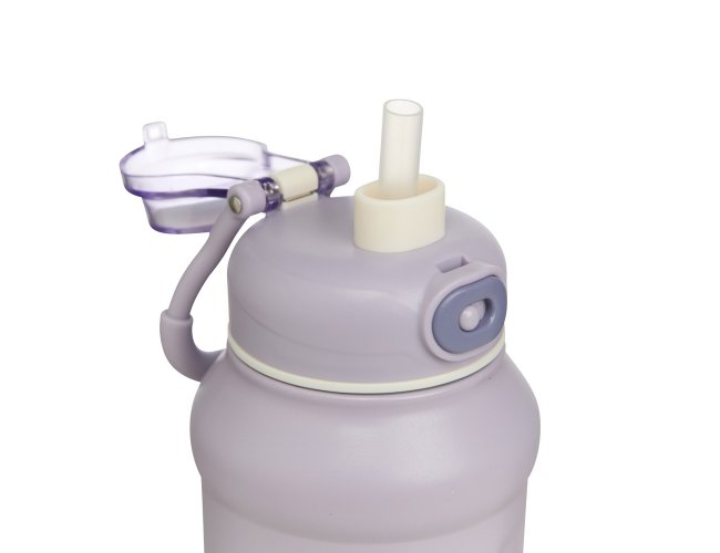 Uma garrafa térmica inox de 850ml pronta para qualquer situação do seu dia a dia! O seu design esportivo destaca-se também por sua construção robusta de parede dupla e isolamento a vácuo que mantém a temperatura dos líquidos por mais tempo. Sua tampa de plástico acompanha, além de uma alça reforçada para facilitar o transporte, uma proteção no bocal com travamento de segurança de fácil acionamento para uma camada extra de segurança e higiene. Além disso, a garrafa contra com um canudo plástico reutilizável.