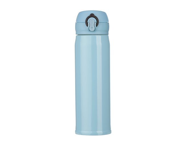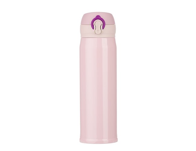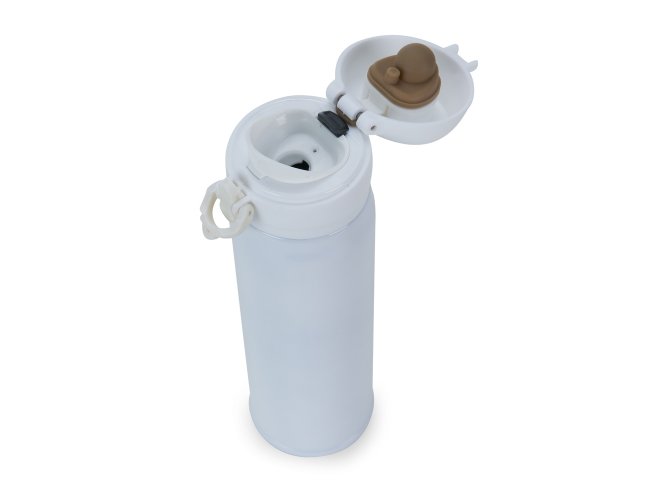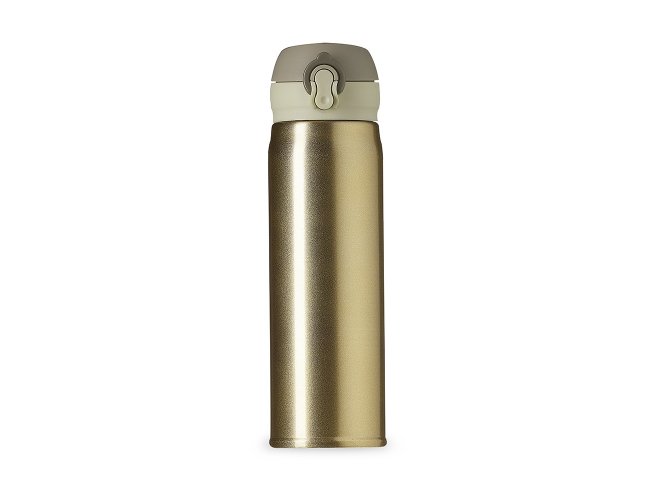Garrafa térmica de 400ml de inox colorida com botão e válvula para abertura. Possui um sistema de trava (basta mover para cima/baixo para abrir/fechar), pressione o botão central para abrir a tampa(possui na parte interna borracha protetora evitando vazar o líquido). Para abrir a tampa por completo basta rosqueá-la, parte interna revestida em inox. Na embalagem do produto pode ir especificado a capacidade de 450ml ou 500ml devido aos fabricantes que trabalham terem impresso a descrição deste modo, porém ressalvamos a capacidade correta de 400ml.