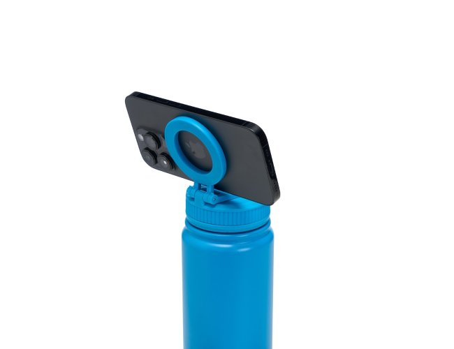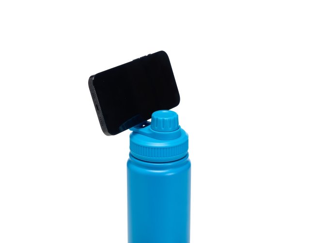 Garrafa térmica inox de capacidade de até 750ml. A pintura eletrostática garante uma cor duradoura e acabamento de maior qualidade. Sua parede dupla e isolamento a vácuo mantém o líquido conservado por mais tempo, também evitando vazamentos. Além disso, a garrafa conta com uma tampa rosqueável e uma alça circular magnética, compatíveis com smartphones da linha iPhone.