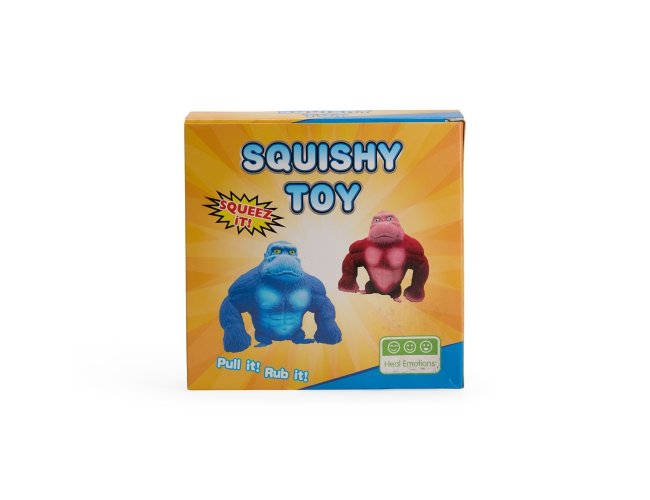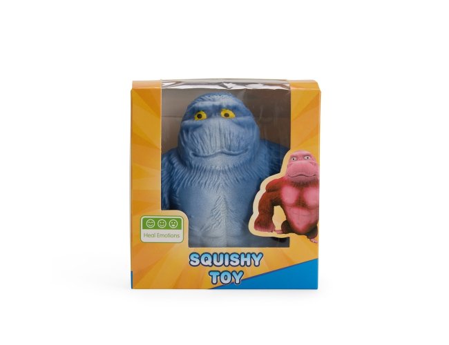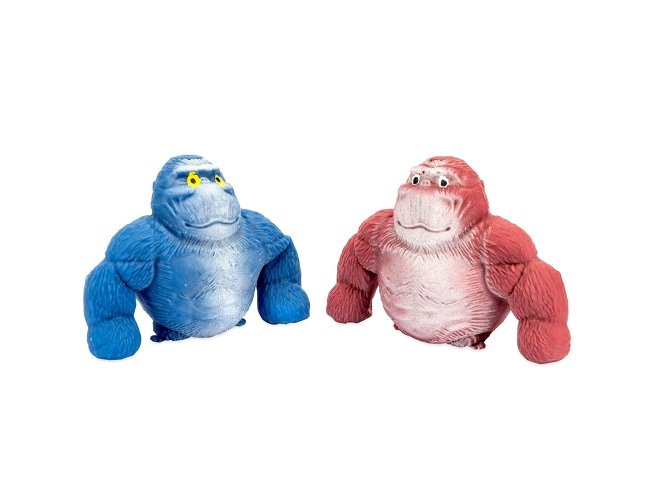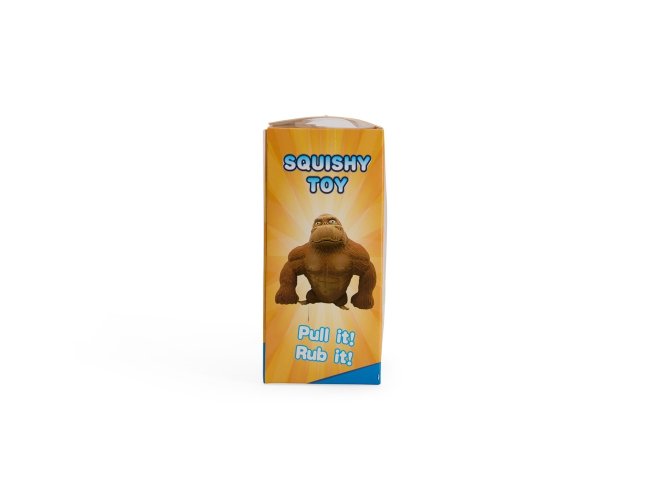 Brinquedo em material emborrachado no formato de gorila. Possui textura macia e flexível que permite apertar e esticar com facilidade.