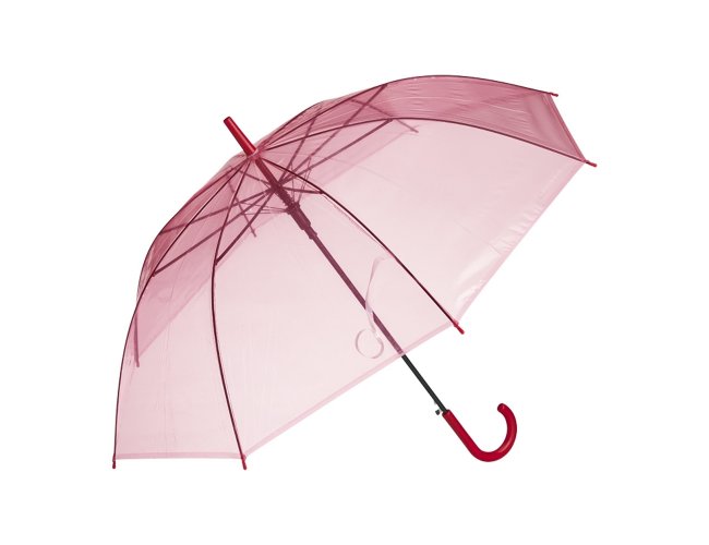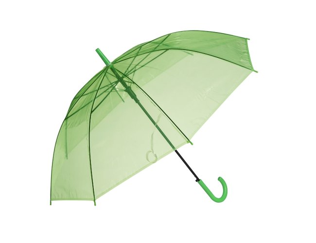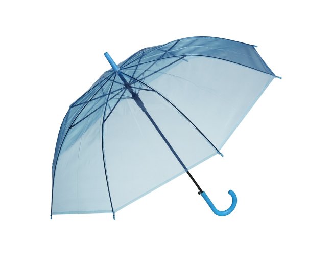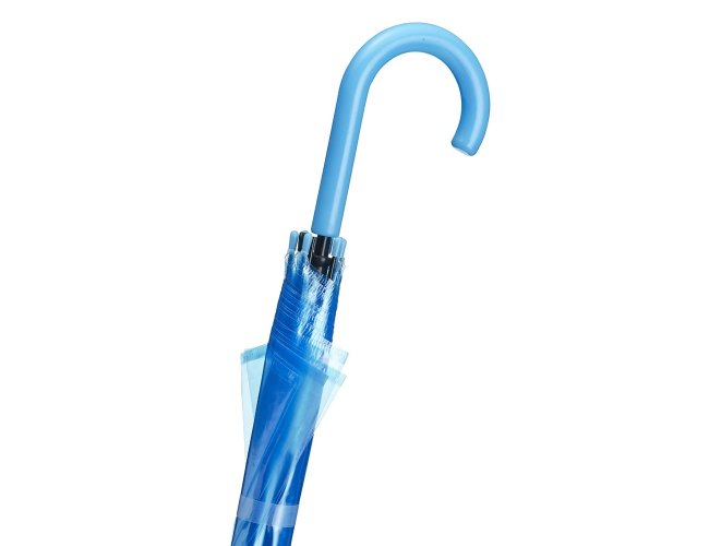 Guarda-chuva plástico com 8 varetas e abertura automática.