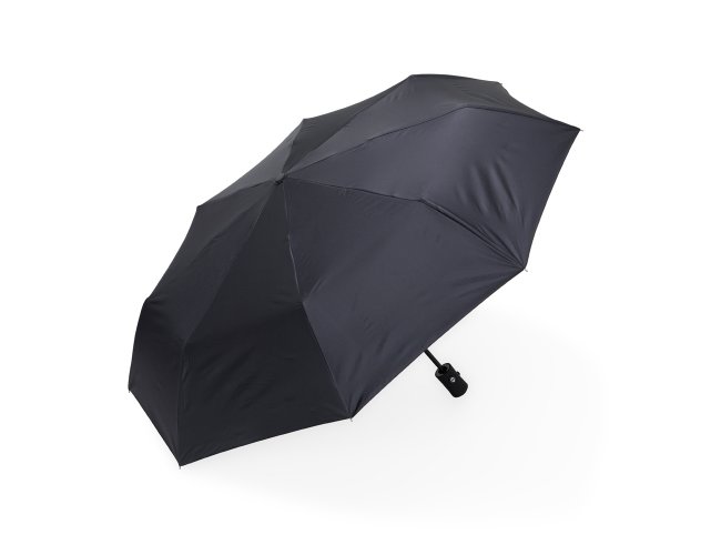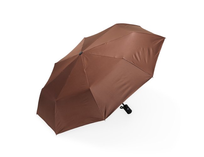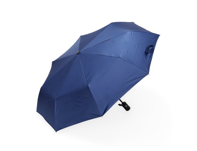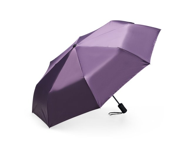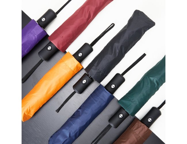 Guarda-chuva automático de nylon com impacto impermeável e proteção UV, tecido interno em vinil. Com estrutura em aço e 8 varetas em fibra de vidro, possui pegador plástico com botão de ação e alça de nylon. Acompanha capa protetora.