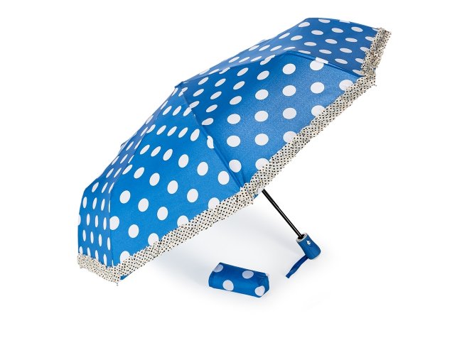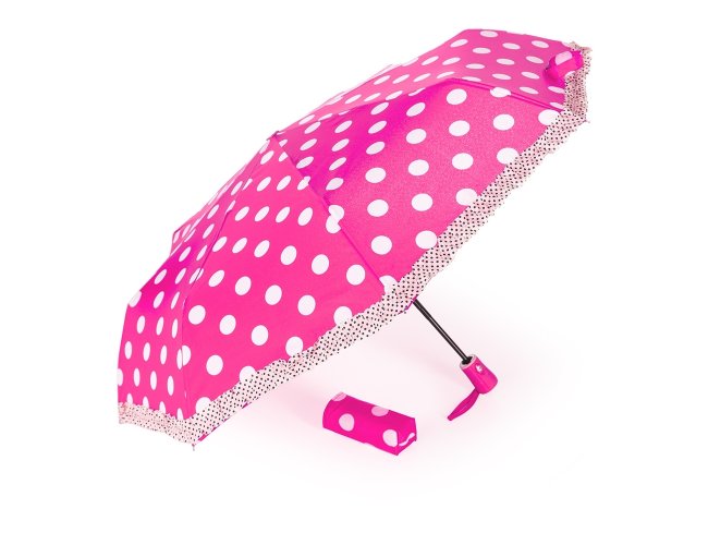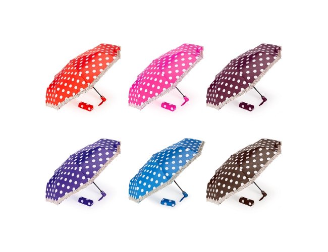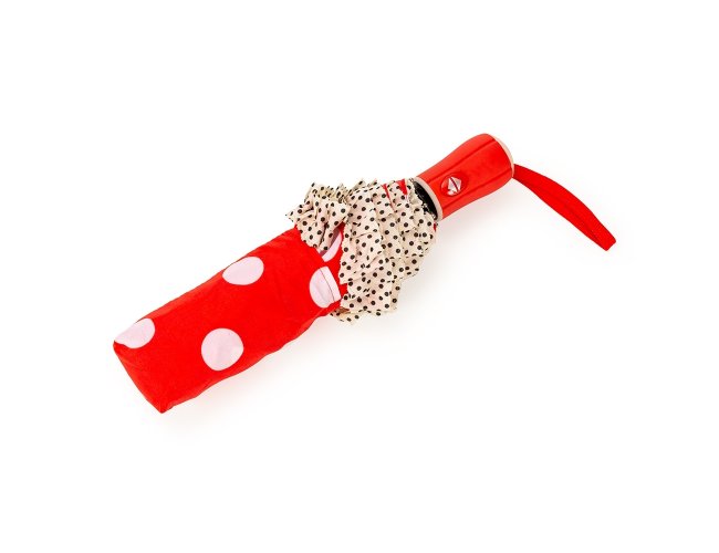 Guarda-chuva de poliéster com acionamento de botão, possui estrutura metálica com 8 varetas e pegador plástico com cordão de nylon. Acompanha capa protetora. OBS.: PEÇAS SORTIDAS.
