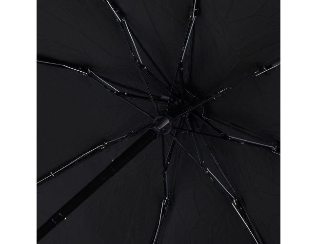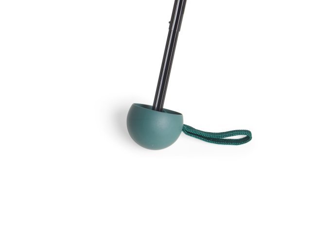Guarda-chuva manual cápsula em poliéster de impacto impermeável e proteção UPF 50. Possui tecido interno em vinil com 8 varetas e estrutura em aço, pegador, botão de abertura e e alça de Nylon. Acompanha estojo protetor com alça.