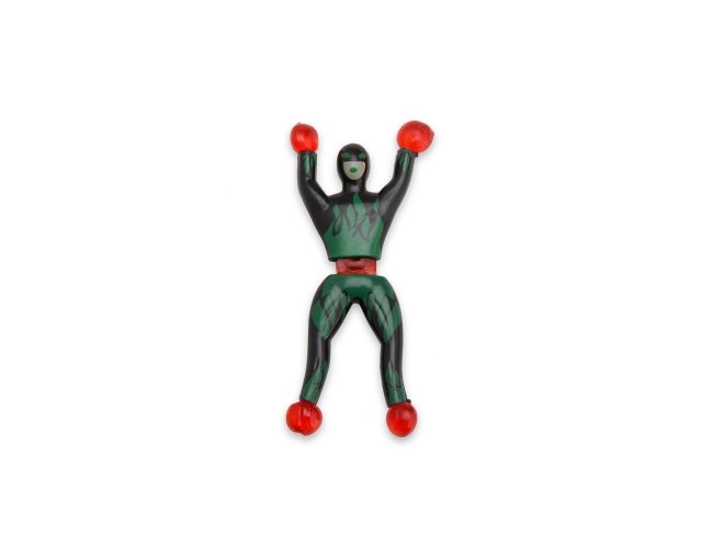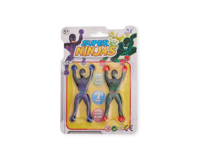 Boneco leve em plástico com design no estilo ninja. Gruda em qualquer superfície lisa, como paredes e janelas, fazendo movimentos acrobáticos durante a descida. Cada embalagem contém dois bonecos.