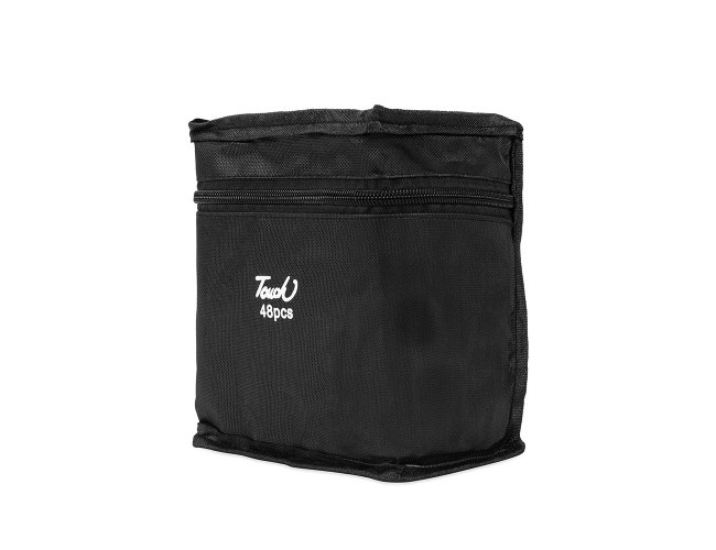 Um kit com 48 canetas marcadoras com pontas duplas: uma fina e outra chanfrada grossa. Cada uma das canetas possui corpo leve em plástico, projetado com foco na ergonomia, o que torna seu manuseio simples e agradável até mesmo em períodos prolongados. Este é um conjunto que, através de toda a sua versatilidade com as pontas e a variedade de cores, traz todas as possibilidades criativas para pintar, desenhar, escrever ou marcar textos. Acompanham bolsa para facilitar o transporte do kit.