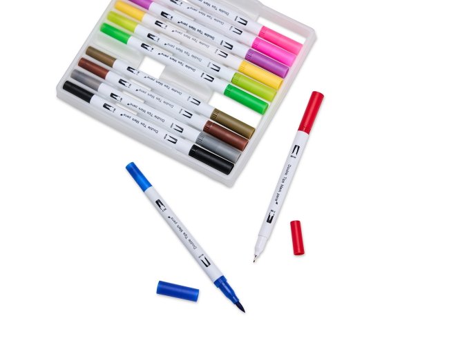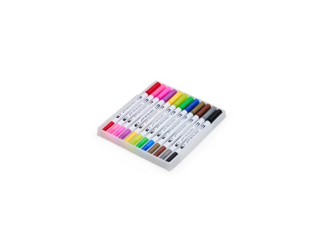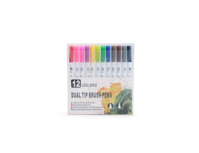 Este é um kit com 12 canetinhas de cores únicas e distintas com pontas duplas: uma fina e a outra em formato de ponta pincel. Apresenta uma variedade de cores ideais para favorecer a criatividade para a elaboração dos mais diversos tipos de atividades como desenho, pintura e escrita. Cada canetinha é à base de água, não tóxica e livre de odores, tudo para garantir mais segurança durante o uso. O kit de canetinhas vem em um estojo em plástico com fechamento prático. Observação: não adequado para crianças menores de 3 anos.