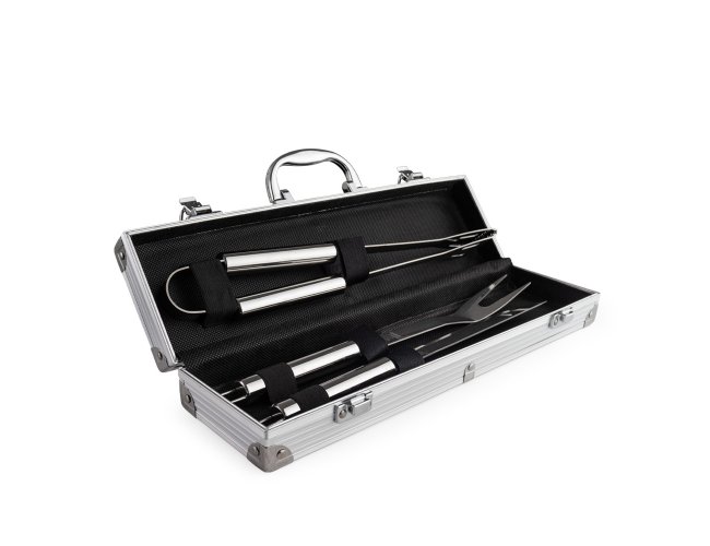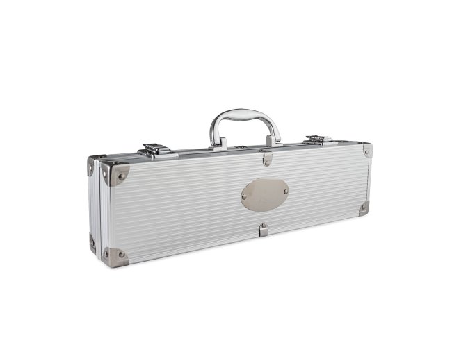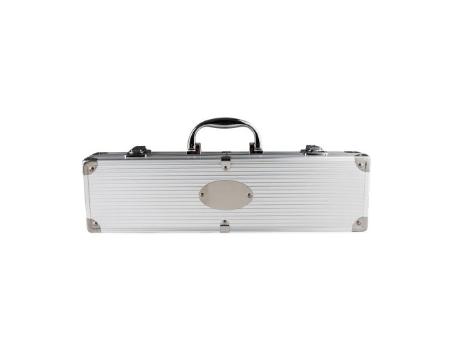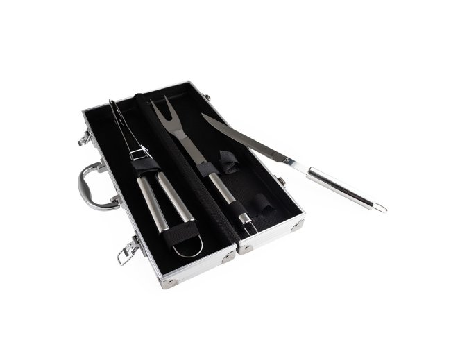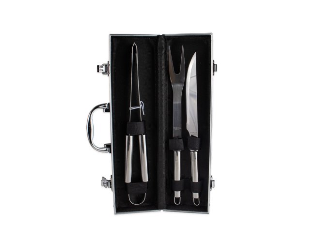 Prepare churrascos deliciosos com nosso kit de três peças, ideal para quem busca qualidade e precisão no preparo de carnes e outros alimentos. O conjunto inclui uma pinça, um garfo e uma faca de sete polegadas, acompanhados de uma elegante maleta de alumínio com plaquinha para personalização, garantindo mais exclusividade e organização.