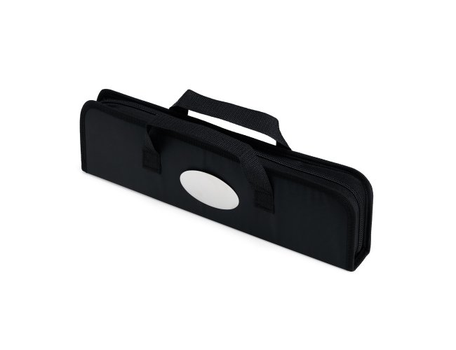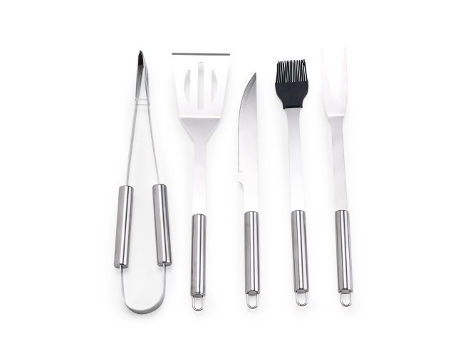 Um kit ideal para acompanhar momentos de confraternização marcantes que apenas um bom churrasco pode proporcionar. O nosso kit traz 5 itens em aço inox indispensáveis para preparar um bom churrasco: 1 faca de 6,2 polegadas de lâmina, um garfo, 1 espátula, 1 pincel com cerdas de silicone e 1 pegador. Além disso, ele acompanha um estojo de nylon com um par de alças fixas para dar maior facilidade de transporte, além de uma placa metálica personalizável com verso autoadesivo.