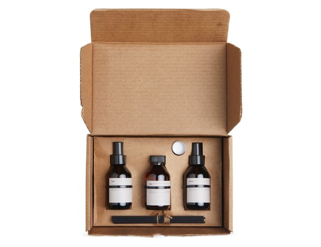 Home Spray e difusor em frasco de vidro de 100ml, com essência de Avelã, e Água de Lençol em frasco de vidro de 100ml, essência de Alecrim. Acompanha um tampa com rosca e furo para o frasco de vidro do difusor e 6 varetas.