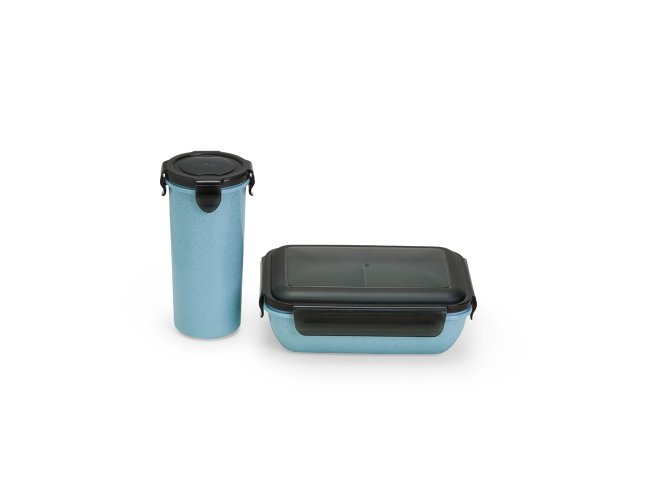 Kit com copo salada de 500ml e marmita hermética de 1L com divisórias, garfo e faca feitos em fibra de bambu. A combinação ideal para as refeições do dia a dia. Feitos em PP atóxico e livres de BPA, são totalmente seguros para alimentos. Ambos são equipados com travas de segurança e supervedação, permitindo que leve-os para qualquer lugar sem riscos de vazamentos. O copo possui escala de medição até 500 ml e sua tampa ainda serve como porta copo, enquanto a marmita contém três divisórias internas que mantêm os sabores separados e controlam as porções, facilitando a montagem de uma dieta equilibrada.
