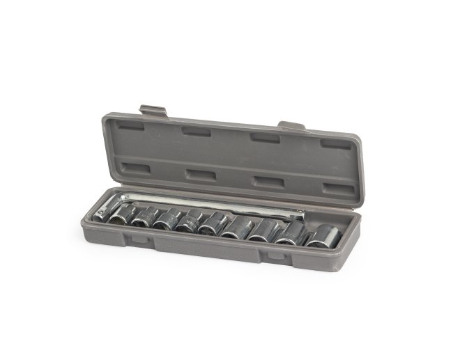 Kit ferramenta com 10 peças em estojo plástico. Contém: 1 chave L e 9 soquetes.