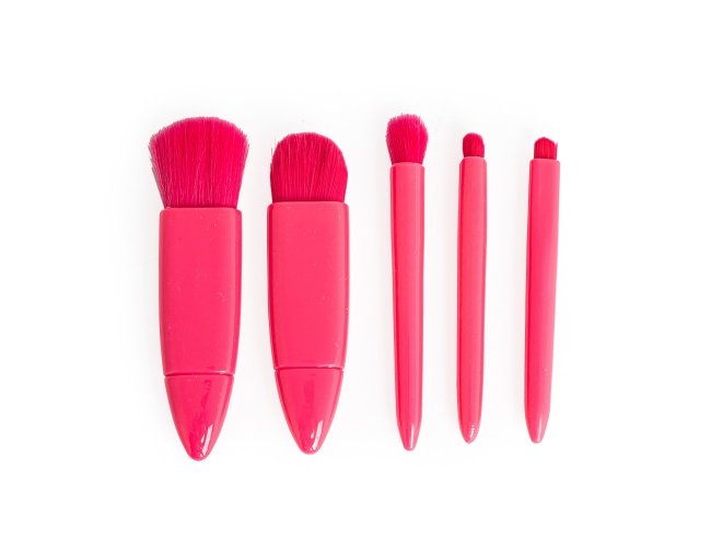 Tudo o que você precisa para uma maquiagem perfeita! Com estojo prático em plástico com trava, espelho e 5 pincéis, é possível se maquiar a qualquer hora e lugar. Cada pincel tem uma função: o de corretivo para suavizar imperfeições, o de esfumar para um olhar natural, e o de batom para aplicação precisa. Esse kit é perfeito para deixar a beleza sempre em dia.