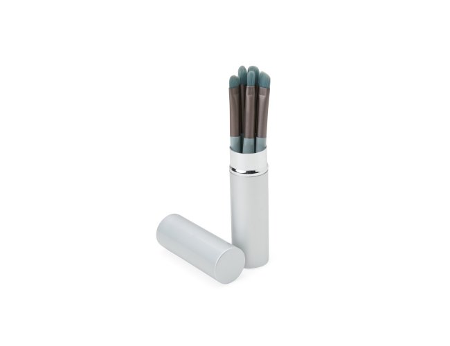 Tenha uma maquiagem incrível com este mini kit de pincéis, ideal para precisão e acabamento perfeito. Com cerdas macias, cabos plásticos ergonômicos e estojo de alumínio, oferece elegância, conforto e resultados impecáveis para iniciantes e profissionais. Inclui um pincel língua de gato, perfeito para bases líquidas ou cremosas; um pincel chanfrado, ideal para delinear olhos e sobrancelhas; um pincel côncavo, indispensável para esfumar sombras; um pincel para aplicar sombras de forma uniforme; e um pincel de precisão reto pequeno, adequado para aplicar sombras ou fazer detalhes mais marcantes, como iluminar a linha abaixo das sobrancelhas.
