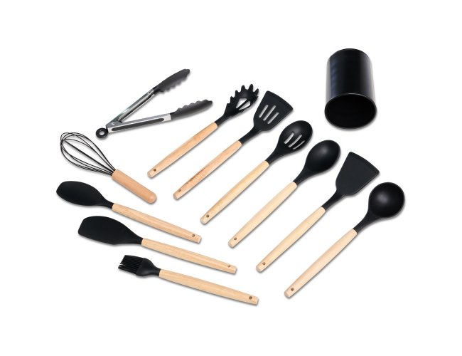 O kit ideal para uma cozinha moderna, projetado para preservar e prolongar a vida das suas panelas! Composto por 12 peças essenciais, este kit é feito em silicone com pegadores de bambu, proporcionando um visual sofisticado. Resistente a temperaturas extremas (-30ºC a 230ºC) e fácil de higienizar, ele é totalmente seguro para suas panelas, pois o silicone não risca nem agride o teflon. O kit inclui: colher escumadeira, colher funda, colher rasa, colher vazada, concha, espátula, espátula de pão, espátula vazada, fouet, pegador e pincel, todos organizados em um suporte plástico. Ecológico e atóxico, nosso kit é cuidadosamente projetado para uso com alimentos, sendo livre de BPA.