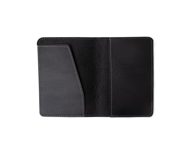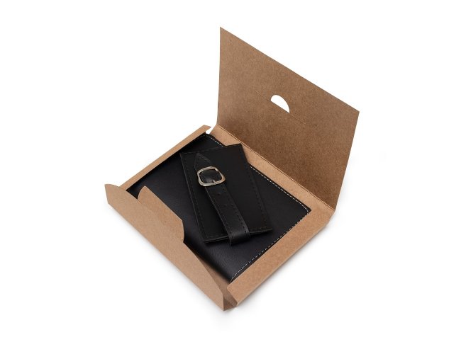 Kit Viagem 2 peças Bidins em couro sintético. Possui porta passaporte Porta com três divisórias para cartões e identificador de bagagem com fivela ajustável.