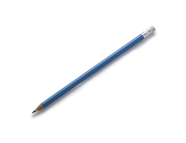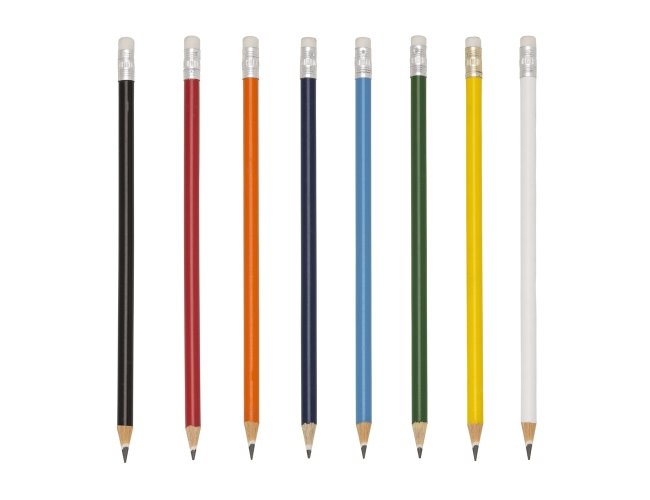 Lápis resinado colorido com borracha e grafite preto, guarnição prateada.