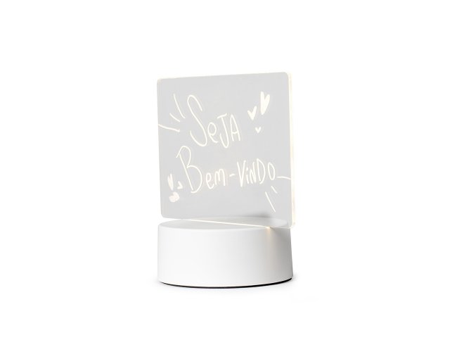 Anote recados e decore ambientes como quartos, escritórios ou salas de estudos com esta luminária moderna e versátil. Ela combina iluminação suave em sua lousa produzida em acrílico, permitindo escrever mensagens e desenhos criativos. Sua base possui antiderrapante em EVA e o seu é funcionamento via USB. Além disso, acompanha caneta com tampa apagadora e um pano para auxiliar na hora da limpeza.