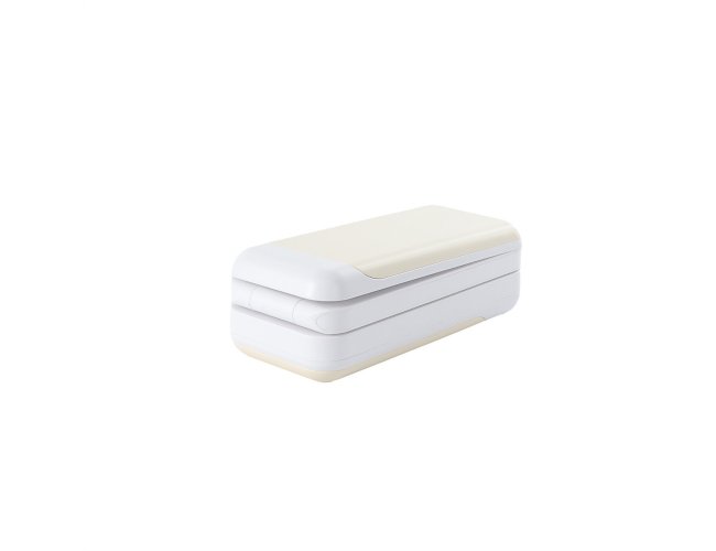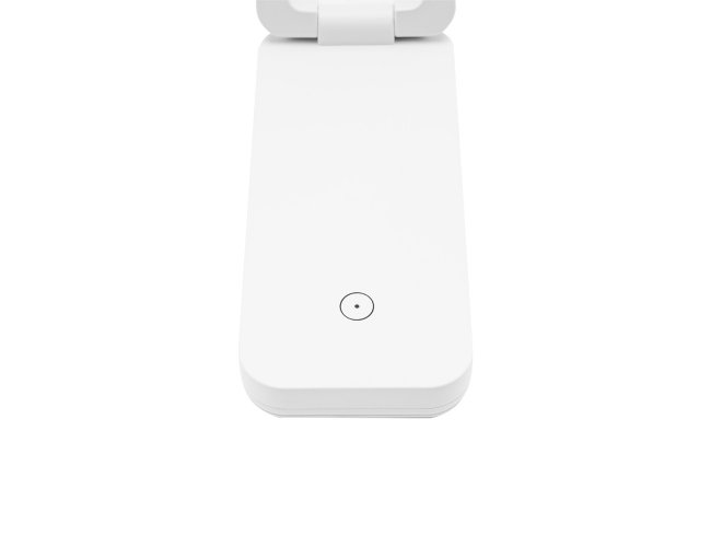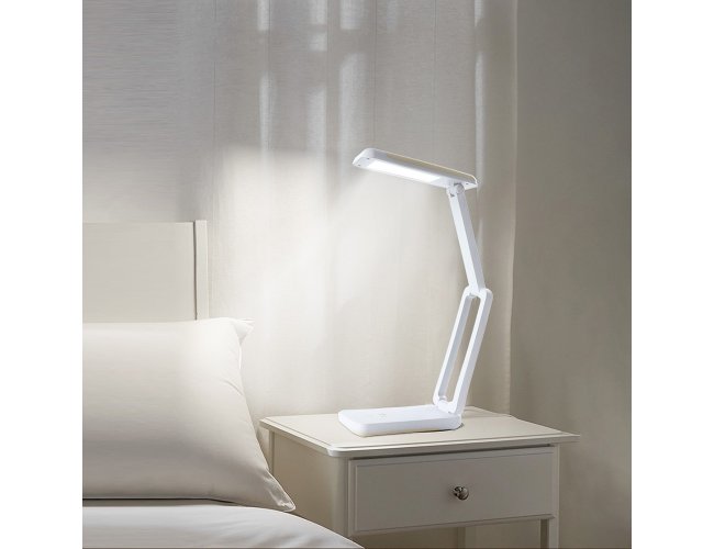 Luminária retrátil recarregável com 14 leds e funcionamento touch, material plástico. Contém três estágios de iluminação com regulagem de intensidade touch: luz fria (branca), luz quente (amarela) e luz mista (branca e amarela). Base com botão para ligar e desligar e área para encaixe na parte inferior. Acompanha uma bateria de lítio e cabo USB para carregamento.
