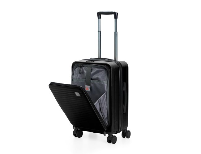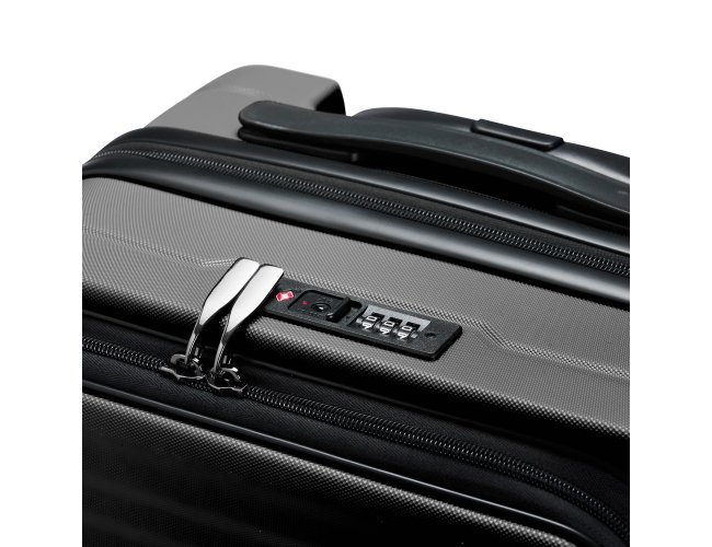 Mala de bordo 32 litros, resistente e funcional! Produzida em plástico ABS, conta com cadeado numérico TSA embutido para mais segurança. Seu design inteligente traz abertura frontal com bolso para notebook de até 15.6, além de divisórias internas com zíperes e cinta compressora para roupas. Precisa de mais espaço? O zíper externo expansível se encarrega de ampliar a capacidade da mala. Para facilitar o transporte, possui puxador retrátil de 3 estágios, duas alças de mão, apoios e ganchos laterais e rodinhas 360º, proporcionando mobilidade total. Acompanha plaquinha metálica grafite personalizável.