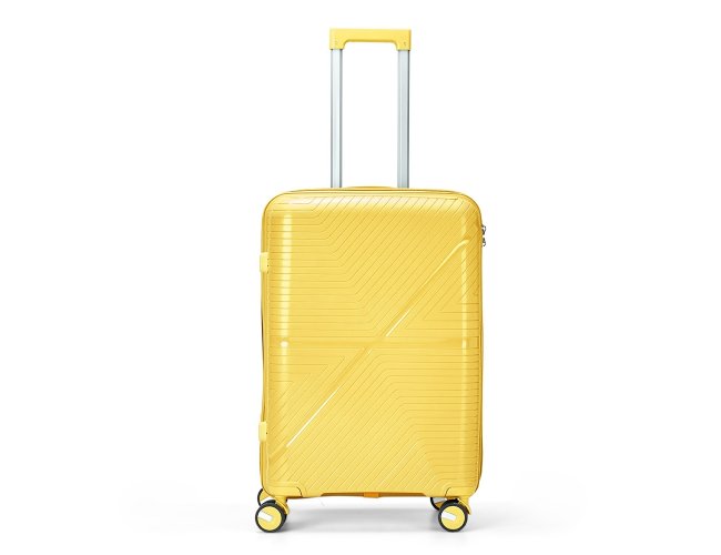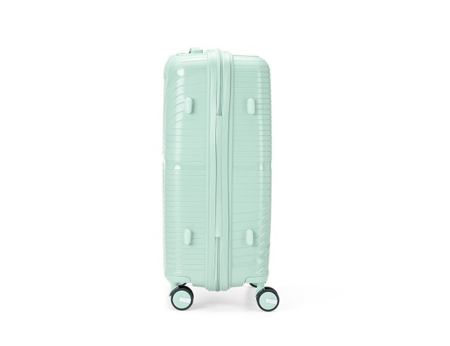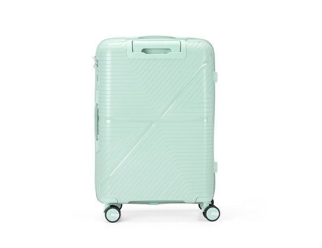 Mala de viagem em plástico resistente com capacidade de até 67 litros. Possui espaço interno com divisória, que contém bolso em tela e outro espaço com cinta compressora para organização de objetos. Conta com duas alças de mãos, uma superior e outra lateral, quatro apoios laterais, quatro rodinhas com giro em 360º, puxador com ajuste de nível e cadeado numérico TSA.