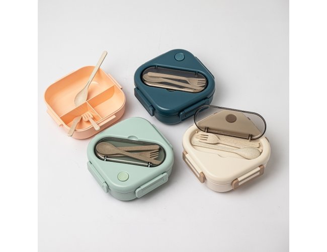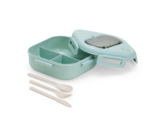 Marmita hermética do tipo Bentô de 1,2 litros de capacidade, com 3 divisórias e 3 talheres. Feita em PP atóxico e livre de BPA, é completamente segura para armazenar alimentos. A tampa possui travas de segurança, supervedação, silicone com respiro e alças que facilitam o transporte. Os talheres podem ser guardados em um compartimento separado com tampa transparente, garantindo praticidade durante as refeições. Além disso, as três divisórias internas mantêm os alimentos separados, preservando o sabor de cada um. Uma escolha inteligente para uma vida prática e saudável.