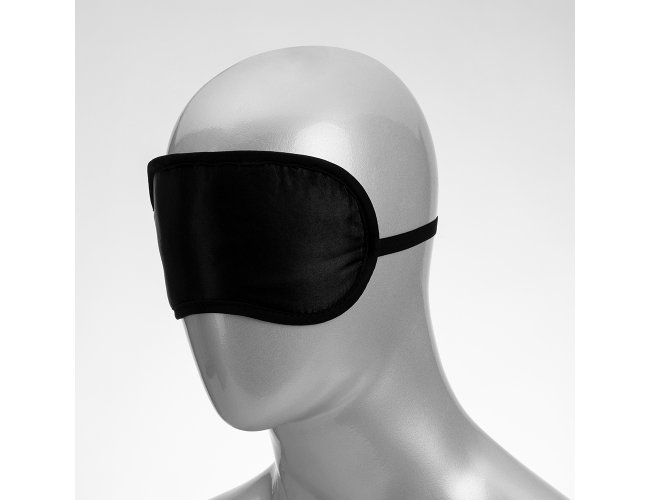 Máscara para olhos confeccionada em nylon com revestimento fino espumado e fita elástica.