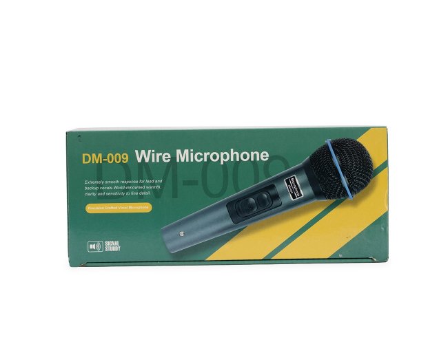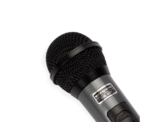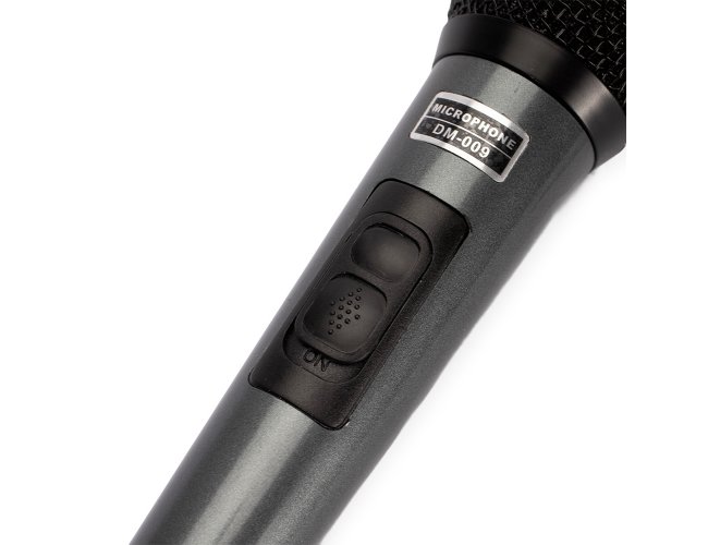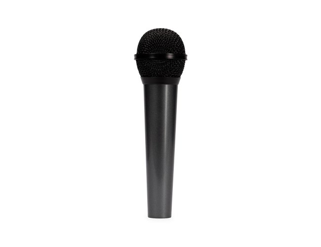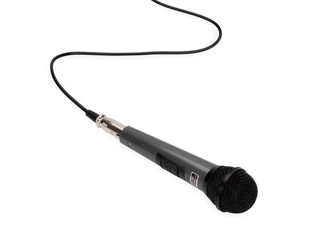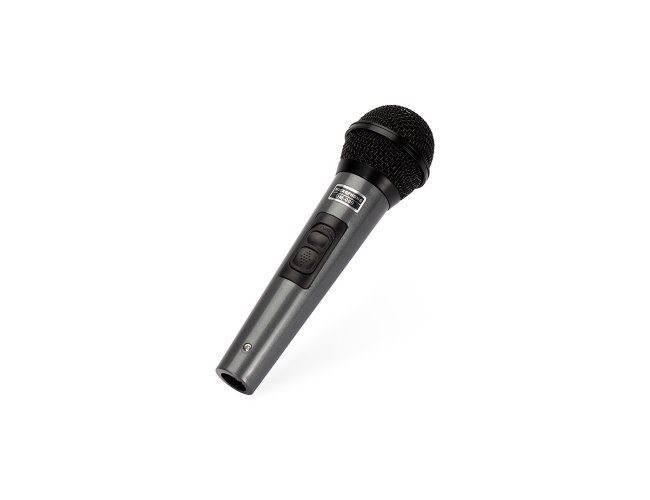 Microfone dinâmico unidirecional com estrutura leve em plástico, cabeça circular com malha de proteção metálica e chave liga/desliga. Acompanha cabo XLR-P10 com 4 metros de comprimento.
