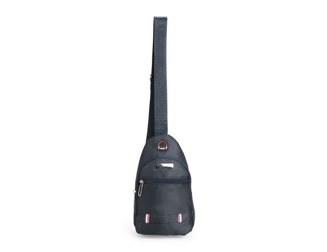 Mini bolsa confeccionada em tecido Oxford resistente à água e alça transversal ajustável em nylon 1L. Possui dois compartimentos e um bolso interno, todos com fechamento em zíper, além de entrada para fones de ouvido e uma pequena placa metálica para personalização.