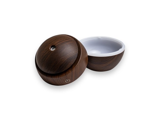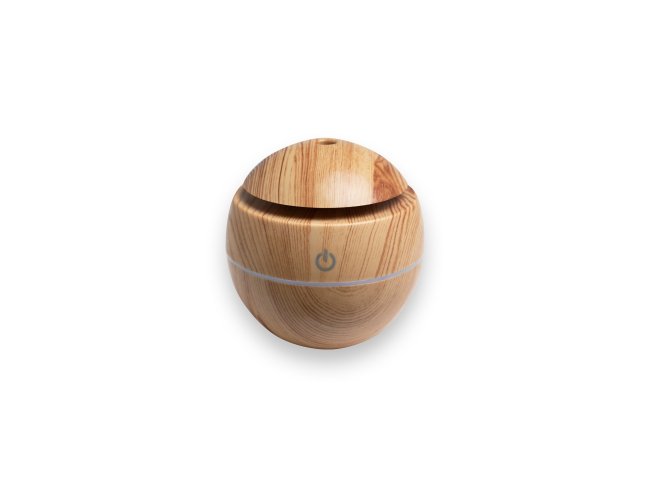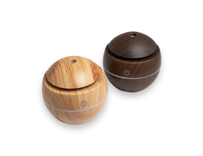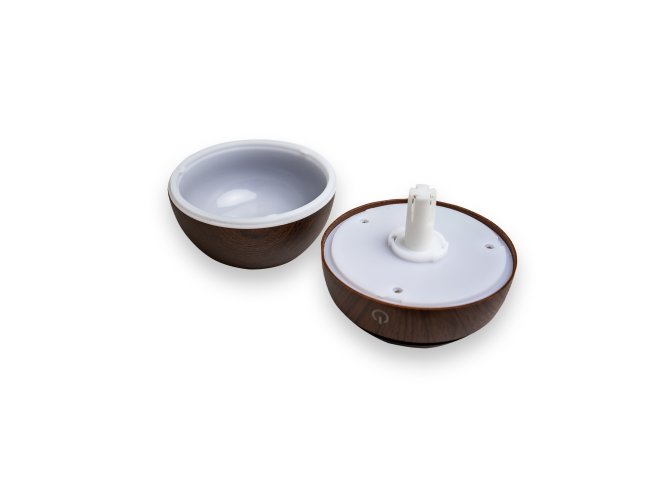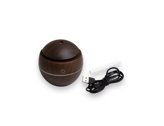 Mini umidificador ultrassônico com led que muda de cor. Acompanha filtro de algodão e um cabo USB. Capacidade para 130ml de água. Produzido em plástico e revestido por adesivo caracterizando madeira. Taxa de tensão DC5V e Taxa de consumo de 2W. O produto não retém energia, funciona somente com o cabo USB conectado a um meio de alimentação de energia. Obs.: para conservação do produto é recomendável utilizar água filtrada e não deve ser usado essências!