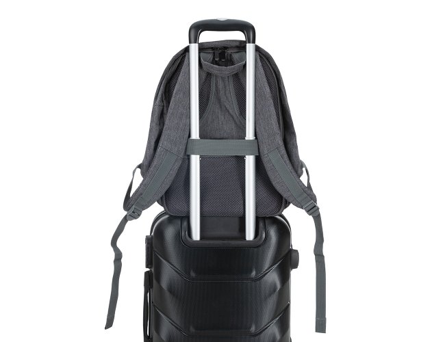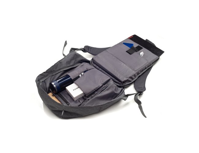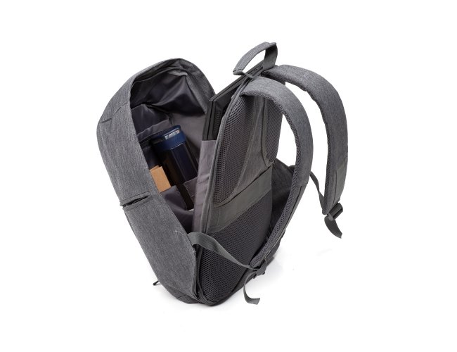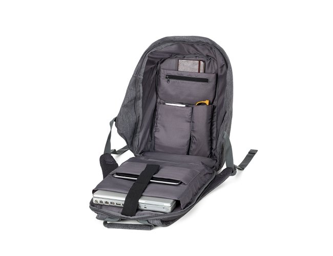 Mochila antifurto impermeável, seu compartimento principal com abertura de zíper na área traseira impossibilita a abertura da mochila nas costas, assim protegendo-o de furtos e trazendo mais segurança para seus objetos de valores. Compartimento principal com bolso para notebook até 15.6 polegadas, bolso para tablet até 9 polegadas, três bolsos para acessórios e bolso com zíper, contém ainda um compartimento frontal e compartimento lateral. Contem faixa reflexiva na área frontal, alça de mãos, acesso para encaixe de malas com puxador, alças para as costas ajustáveis e área traseira com revestimento espumado.