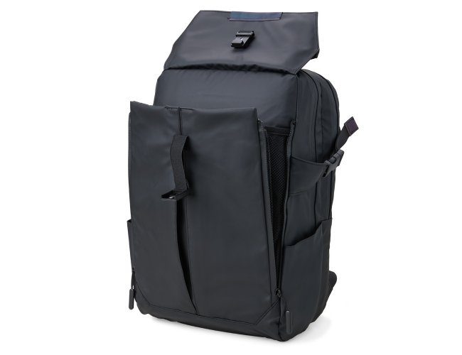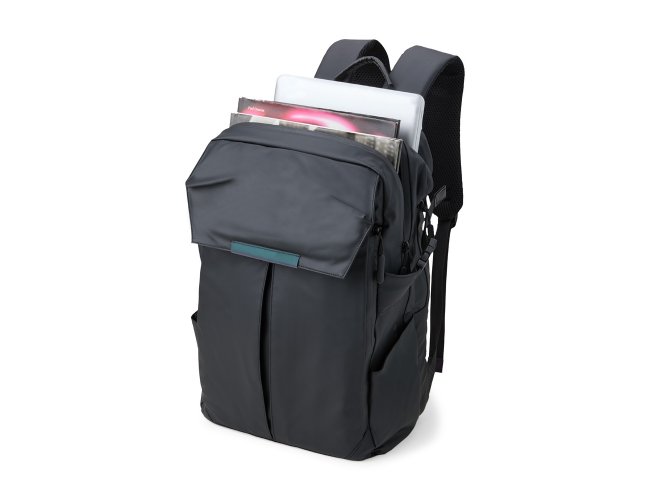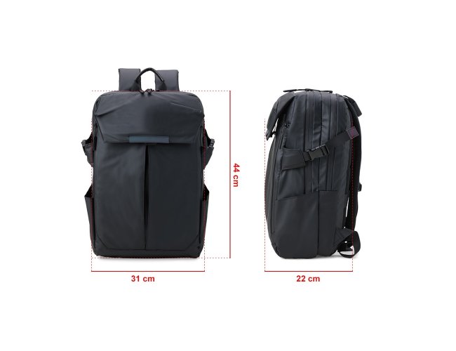 Mochila de 33 Litros confeccionada em couro sintético resistente à água. Contém três compartimentos, sendo um deles exclusivo para acomodar capacete de bicicleta e outro para notebook de 15,6" com revestimento aveludado. A mochila possui faixa e detalhes refletivos, bolsos externos nas laterais, bolso interno de plástico exclusivo para itens molhados, bolso interno de tela, alça para engate em mala de viagem, alça regulável revestida com espuma, parte traseira também revestida com espuma para maior conforto e fivelas para melhor expansão e segurança da mochila.
