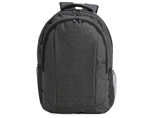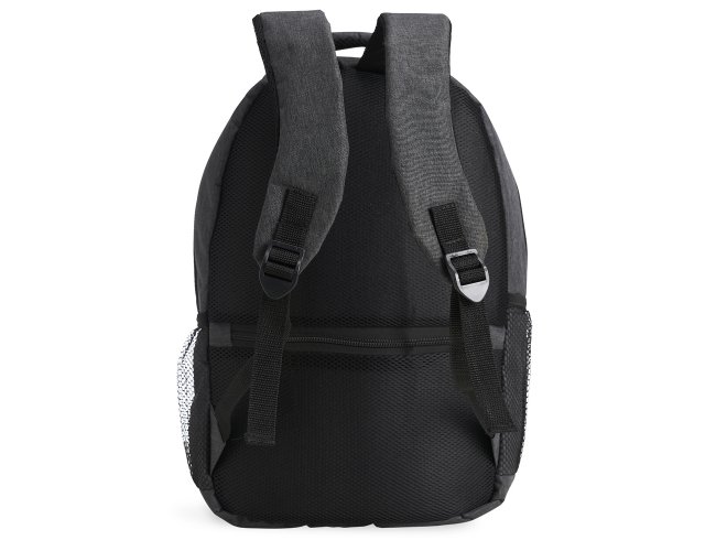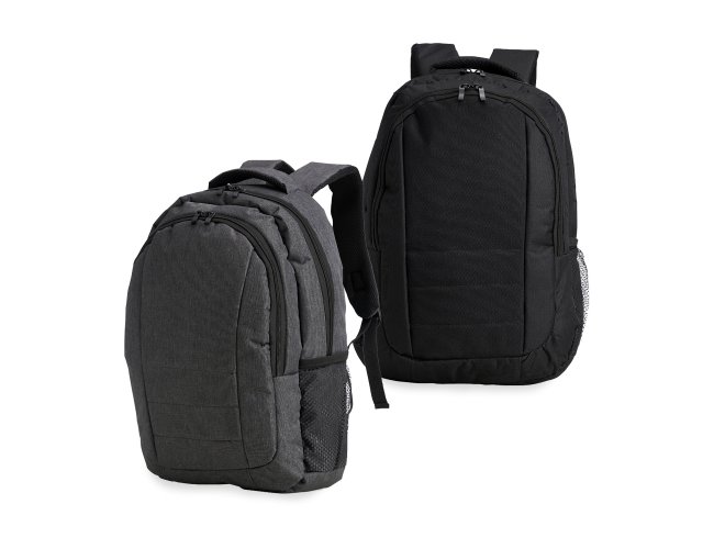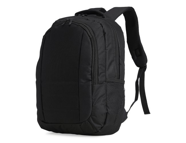 Mochila de nylon e oxford 26 litros com 3 compartimentos, sendo o principal com bolso para notebook 15?6 com fecho de velcro, compartimento mediano frontal com divisórias internas e compartimento na área costada. Contém bolsos laterais telados, alça de mão, alça de costas e área costada com revestimento espumado.