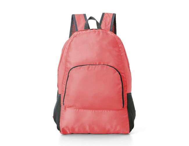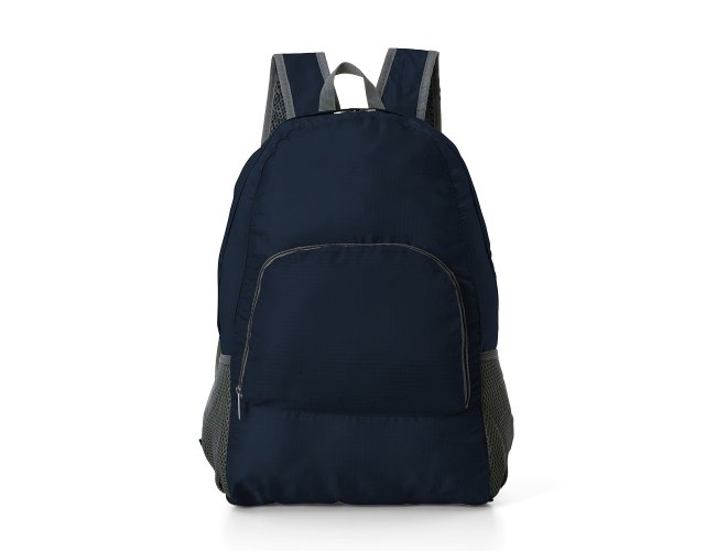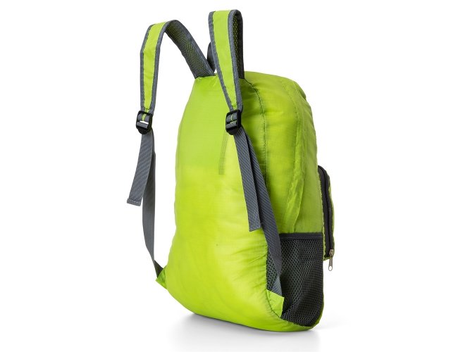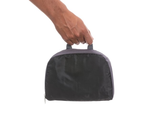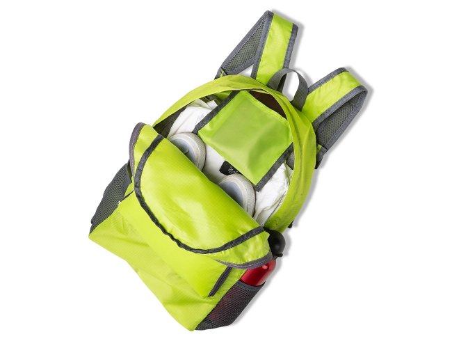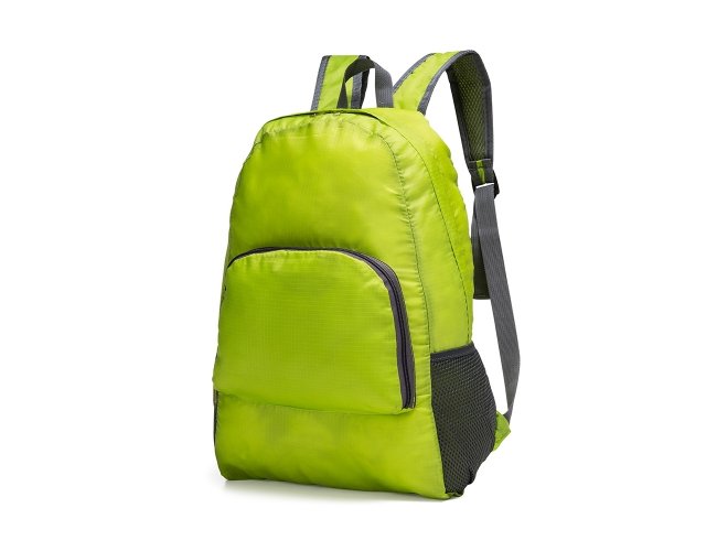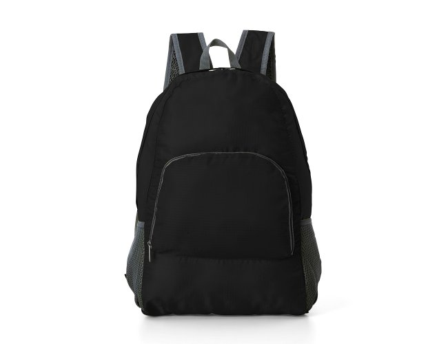Mochila dobrável de 27 litros confeccionada em nylon impermeável. Compacta e com abertura prática, possui compartimento principal com pequeno bolso interno, bolsos laterais em malha e bolso frontal ? compartimento responsável por acomodar a mochila. Para armazenar a mochila no compartimento basta virar o bolso frontal do avesso e dobrar o tecido para melhor acomodação do material. O modo compacto possui uma alça em nylon para transporte, a mochila dispõe de alça de mão em nylon e alças ajustáveis para as costas com revestimento espumado.