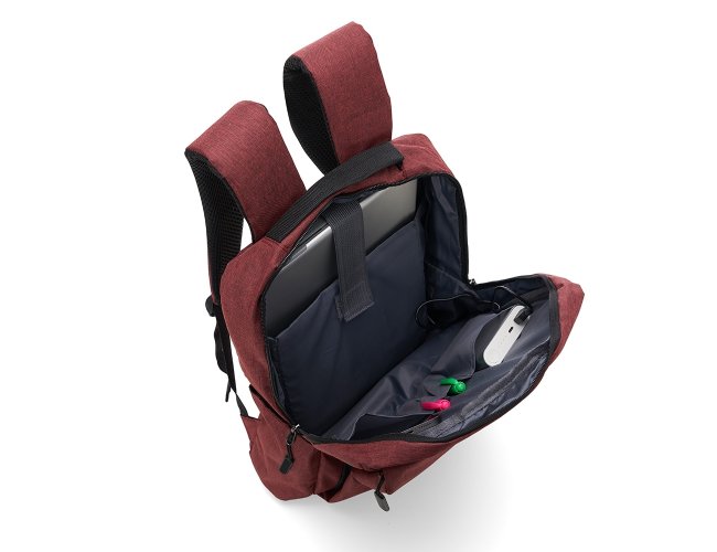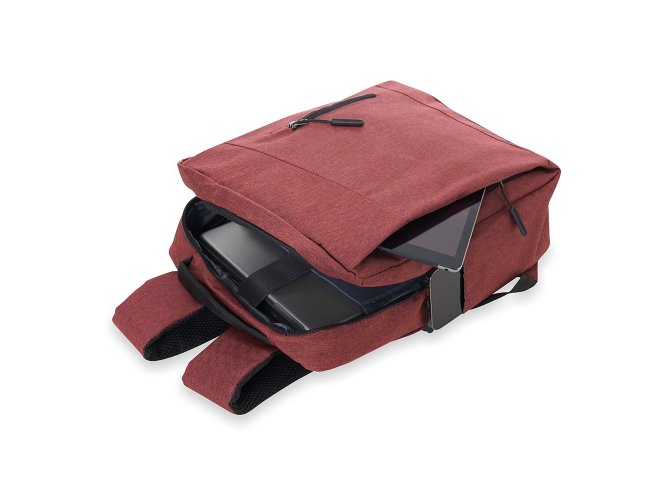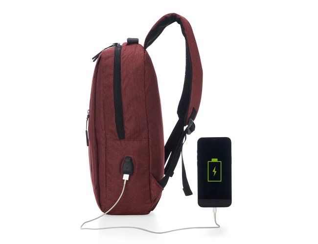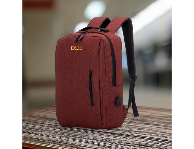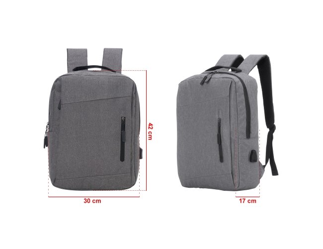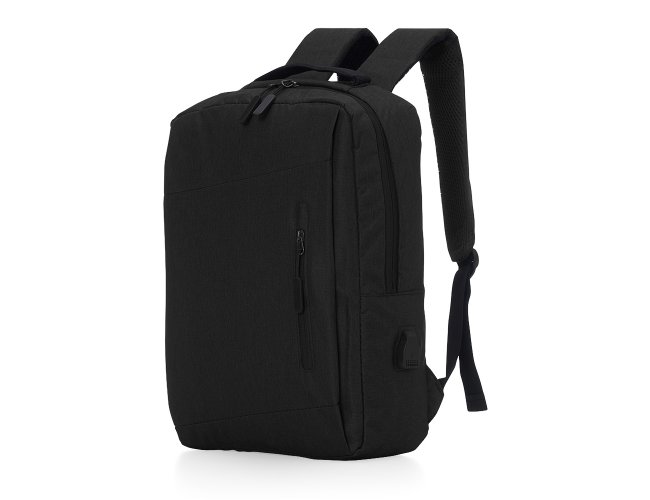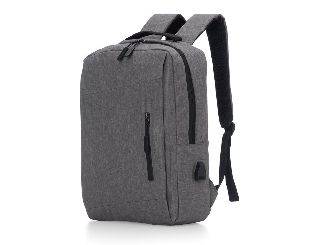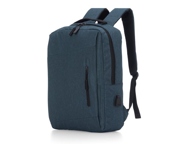 Mochila de nylon 21 litros com três compartimentos, sendo o principal com bolso para notebook 15,6. Com divisórias internas para acessórios, a mochila possui bolso lateral e suporte externo usb.