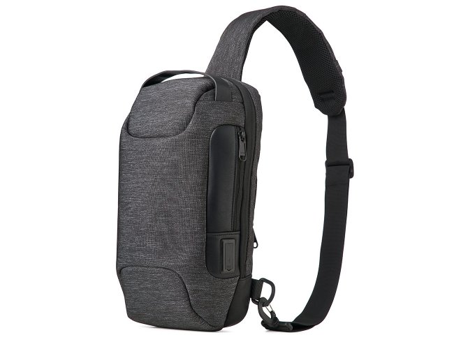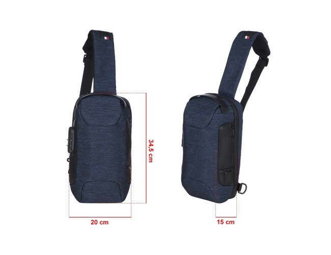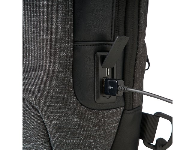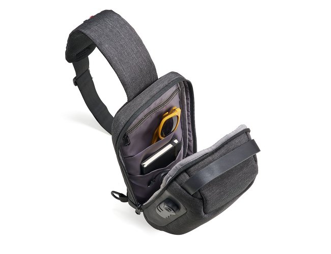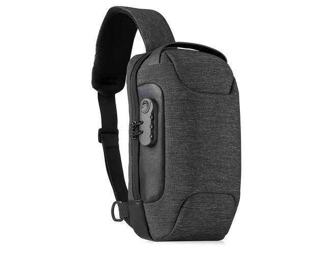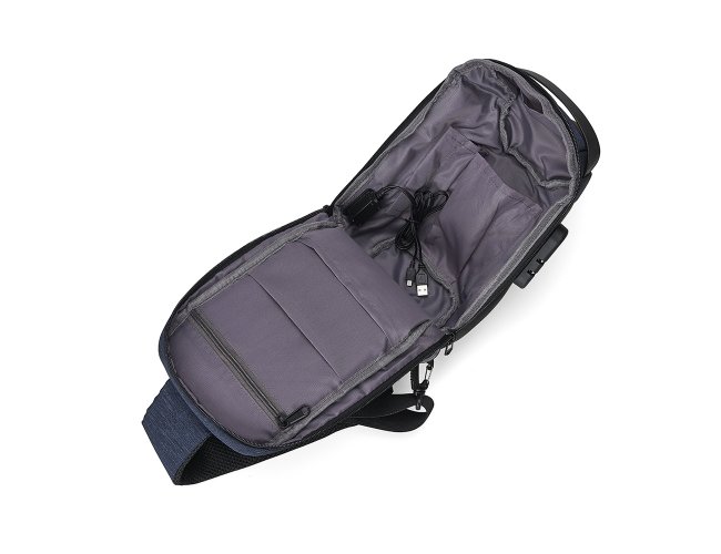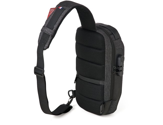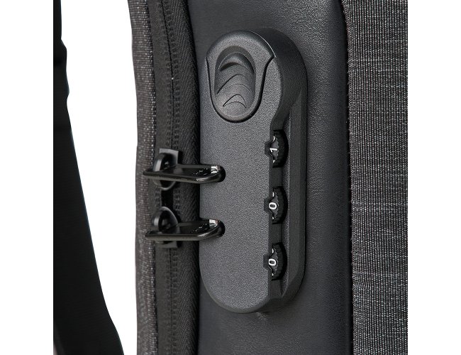 Contém cadeado numérico (TSA), suporte externo usb, bolso para tablet 9, bolsos internos e revestimento costado espumado. Mochila de ombro 7 litros em nylon resistente à água com três compartimentos, sendo dois deles exclusivos para cartões e proteção contra furto.