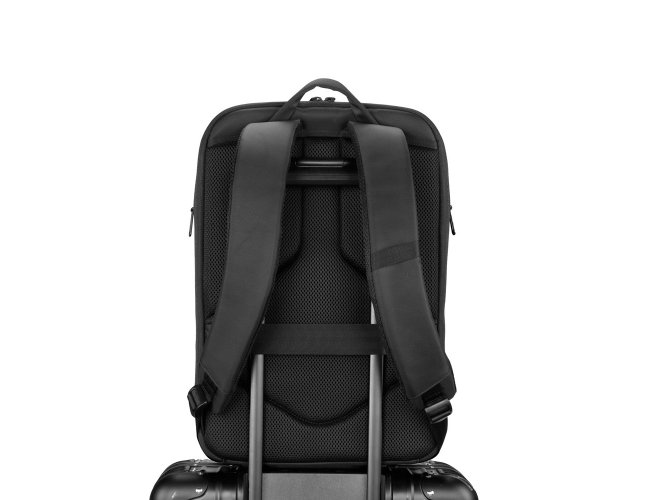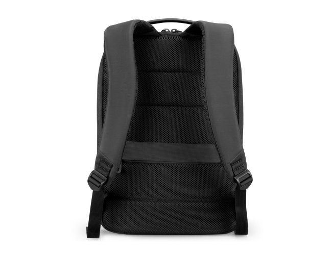 Mochila de 19 litros premium em poliéster impermeável com três compartimentos, sendo um deles para notebook 15,6 e outra com proteção contra futo. Com divisórias internas para documentos, a mochila possui adaptador USB externo, área costada e alças para as costas com revestimento espumado e alça de engate paa malas de viagem.
