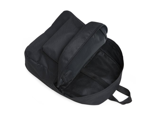 Mochila nylon 600 para notebook. Possui compartimento superior com bolso interno e bolso frontal. Zíperes com ?pegador? de nylon, alças ajustáveis e alça de mão. Acompanha plaquinha metálica para personalização.