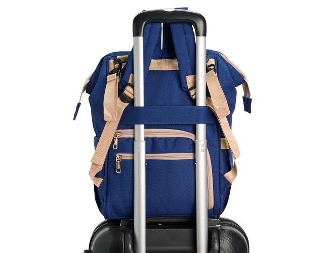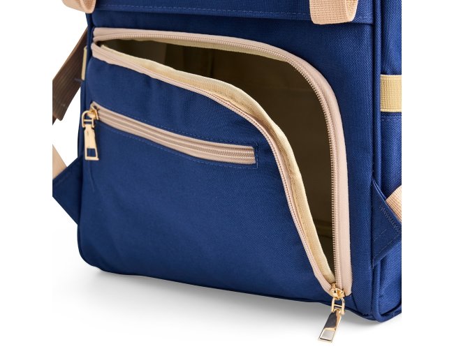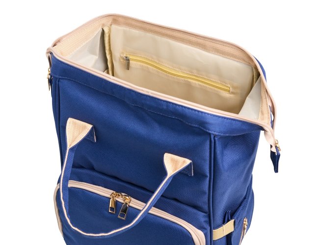 Mochila funcional de 19 litros em tecido oxford resistente à água. Possui três compartimentos distintos para uma organização eficiente. O compartimento principal conta com uma armação metálica que proporciona abertura fácil e manuseio prático, além de seis bolsos internos para organização adicional, sendo um deles em material plástico para itens molhados. Conta também com um acesso nas costas da mochilha para pegar itens que estajam no fundo com facilidade. No compartimento frontal, encontram-se três bolsos térmicos ideais para itens sensíveis à temperatura e um bolso de tela. E o terceiro compartimento sendo nas costas. A mochila também dispõe de dois bolsos laterais e duas alças de mão com suporte para juntura, proporcionando praticidade ao transporte, alça para engate em malas de viagem e duas alças para pendurar a bolsa onde desejar. As alças para as costas são ajustáveis, garantindo conforto personalizado durante o uso.
