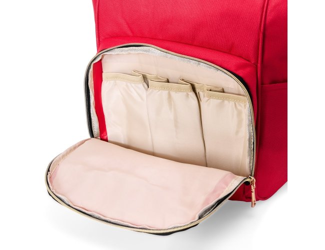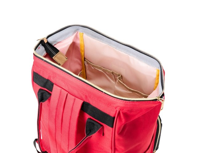 Mochila funcional de 21 litros em tecido oxford resistente à água. Possui dois compartimentos distintos para uma organização eficiente. O compartimento principal conta com uma armação metálica que proporciona abertura fácil e manuseio prático, além de quatro bolsos internos para organização adicional. Na compartimento frontal, encontram-se três bolsos térmicos ideais para itens sensíveis à temperatura. A mochila também dispõe de dois bolsos laterais e duas alças de mão com suporte para juntura, proporcionando praticidade ao transporte. As alças para as costas são ajustáveis, garantindo conforto personalizado durante o uso.
